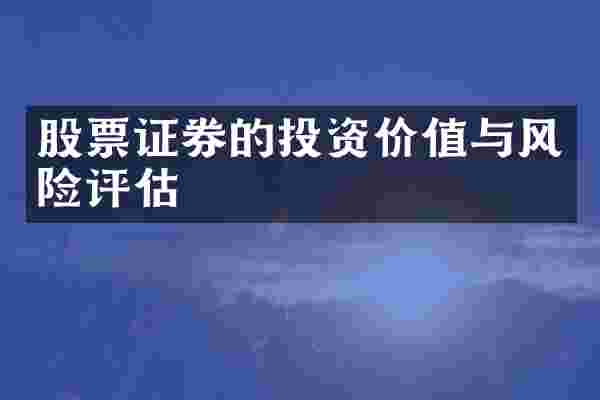 股票证券的投资价值与风险评估是投资决策过程中非常重要的环节。以下是对这一主题的简要分析: 投资价值评估1. 基本面分析: - 财务报表:分析公司的收